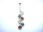 | SILVER ART DECO STYLE MULTI COLOUR AMBER PENDANT. |