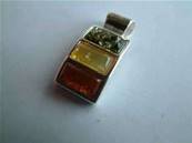 | | 925 SILVER THREE COLOUR BALTIC AMBER PENDANT.