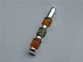 | This classically stylish silver rod is set with 3 oblong amber cabs and is drilled through the side to take a chain (available seperately). Length of pendant appx 2cm