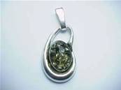 | | Crafted for us in Gadansk Poland from 925 silver with yellow, gold and green Amber, this contemporary and stylish pendant measures appx 3cm.