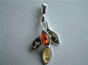 | | FEATURES THREE COLOURES OF BALTIC AMBER. SIZE OF PENDANT = 18MM IN LENGTH INCLUDING BAIL X 16MM WIDE APROX. WEIGHT = 1g. SIZE OF AMBER PIECES = 7MM X 4MM. |