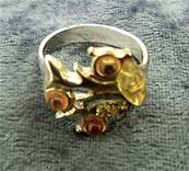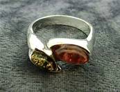 | | THIS RING FEATURES 2 OVAL SHAPE CABOCHONS IN GREEN & RED COLOURED BALTIC AMBER. SIZE OF CABOCHONS = 7 X 3MM & 10 X 5MM APROX. ONLY RING SIZE 'O' IS AVAILABLE. WEIGHT = 5g. |