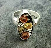 | | THIS RING FEATURES SMALL OVAL & ROUND SHAPE CABOCHONS IN RED, GREEN & YELLOW BALTIC AMBER. SIZE OF CABOCHONS = 3MM IN DIAMETER (ROUND) & 7 X 3MM APROX (OVAL). RING SIZES AVAILABLE = N, P. WEIGHT = 5g. |