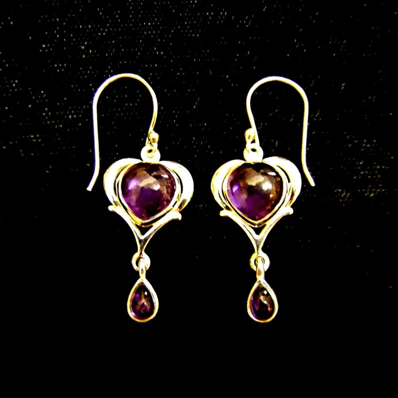 AMETHYST PENDANT STYLE EARRINGS WITH 925 SILVER SETTING.