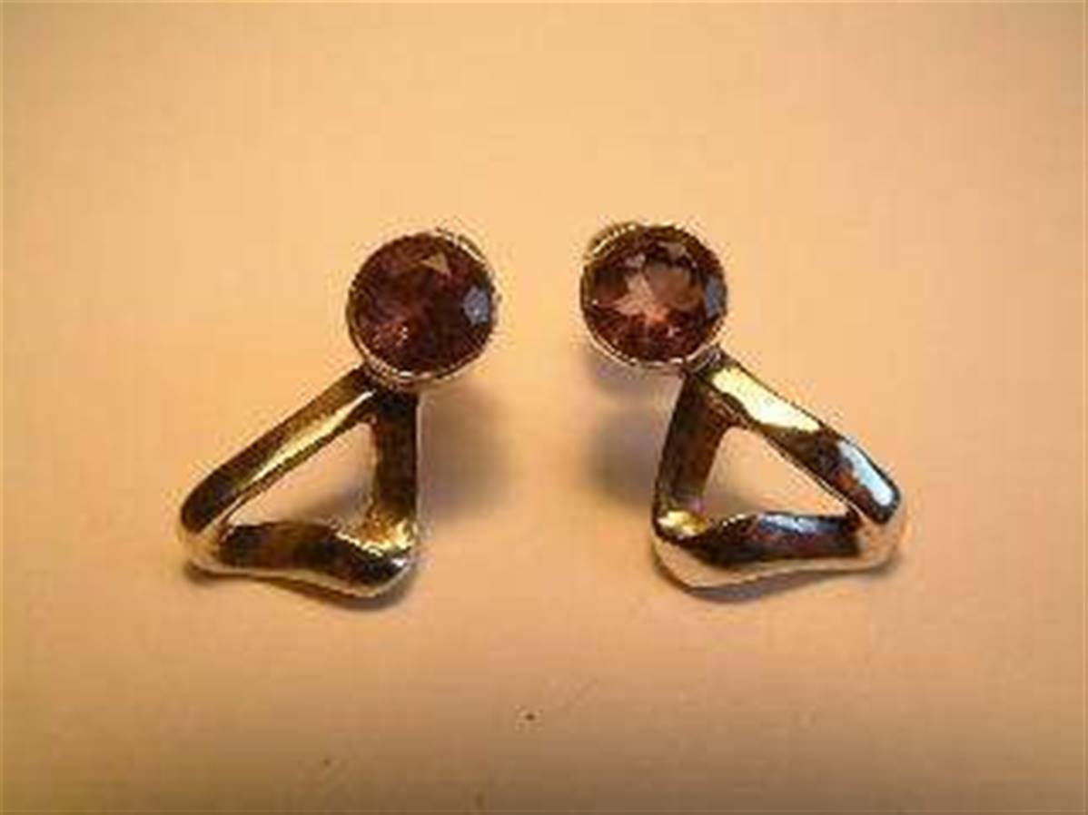 HEART SHAPE AMETHYST 925 SILVER STUD DROP EARRINGS SET WITH FACETED ROUND CAB.