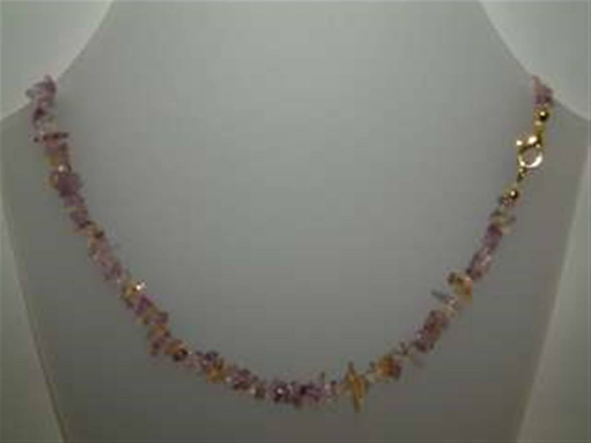 AMETRINE GEM CHIP NECKLACE FEATURING A GOLD PLATED LOBSTER STYLE CLASP (10 PACK). 18" LONG. 20g EACH.