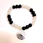 | | Charm Bracelet in Quartz with Black Obsidian round beads.