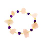 | ELASTICATED BEAD BRACELET WITH UNPOLISHED ROSE QUARTZ CRYSTALS.