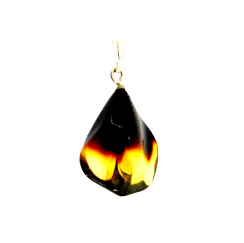 BI-COLOURED POLISHED BALTIC AMBER PENDANT WITH 925 SILVER BAIL.