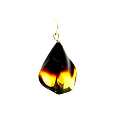 BI-COLOURED POLISHED BALTIC AMBER PENDANT WITH 925 SILVER BAIL. SP14286PEND