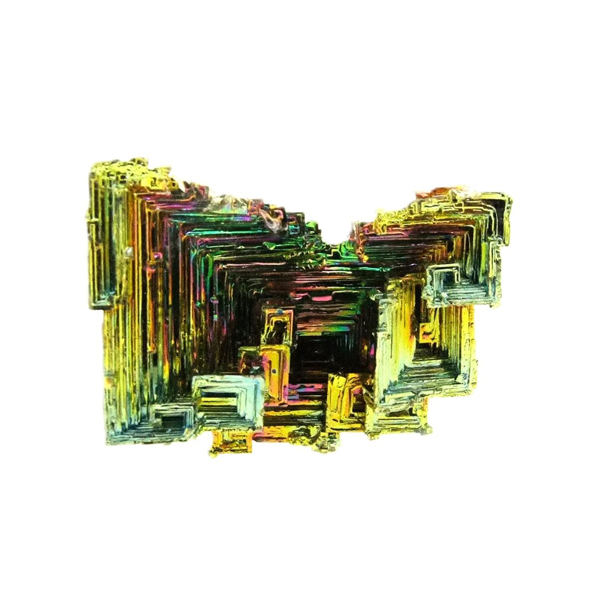 Lovely colourful, angular Bismuth crystal formations formed from raw Bismuth under a special laboratory process.