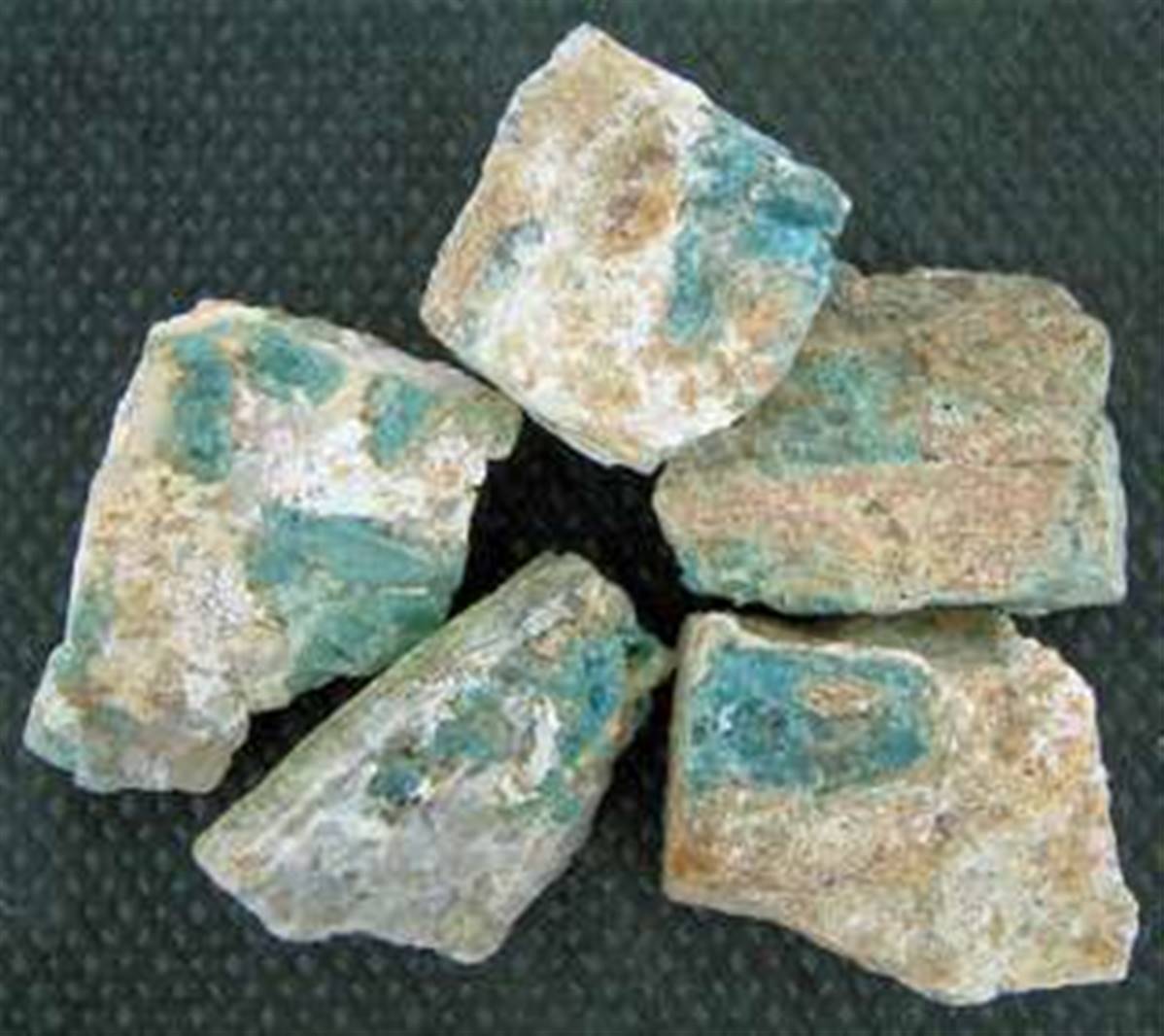 BLUE/GREEN TOURMALINE IN FELDSPAR WITH QUARTZ MATRIX SPECIMENS. 50 - 60MM ACROSS. 80 - 140g.