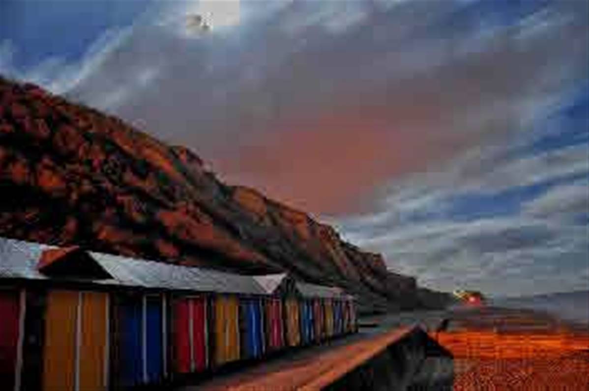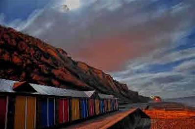 Taken under the magical moonlight of a Blue Moon, Beach huts are bathed in blue light in the early hours of the new year.Cromer , Norfolk. 1st Jan. 2010