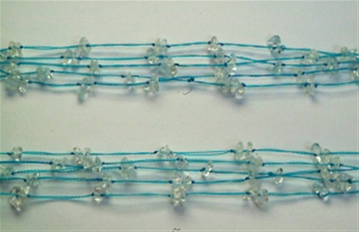 BLUE TOPAZ THREADED GEM CHIP NECKLACE. 18" LONG. 18g. FEATURING A GOLD PLATED LOBSTER STYLE CLASP.