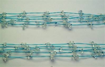 BLUE TOPAZ THREADED GEM CHIP NECKLACE. 18" LONG. 18g. SPR1017