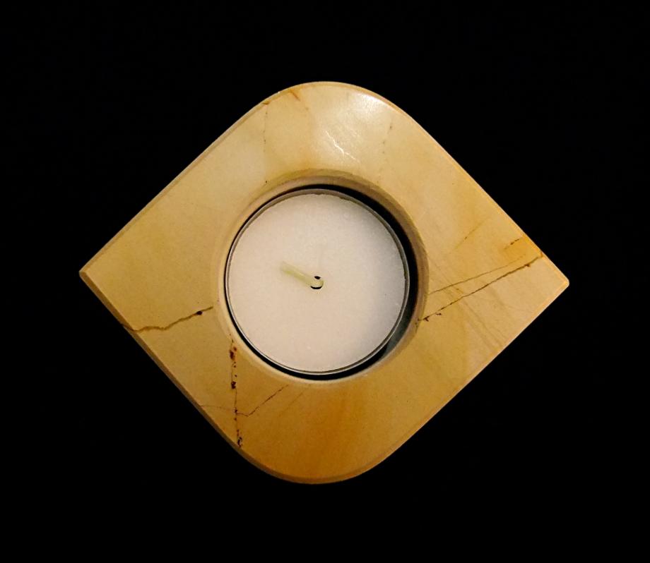 BURMA TEAK MARBLE SINGLE HOLE TEA LIGHT HOLDER.