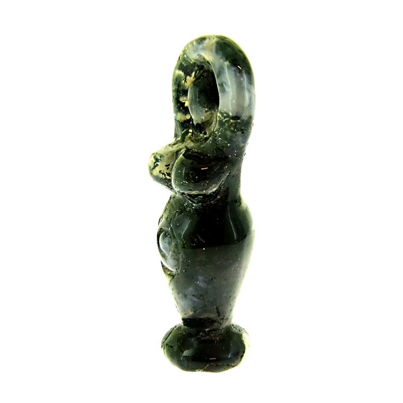 CARVING OF A FERTILITY GODDESS FIGURE IN MOSS AGATE.