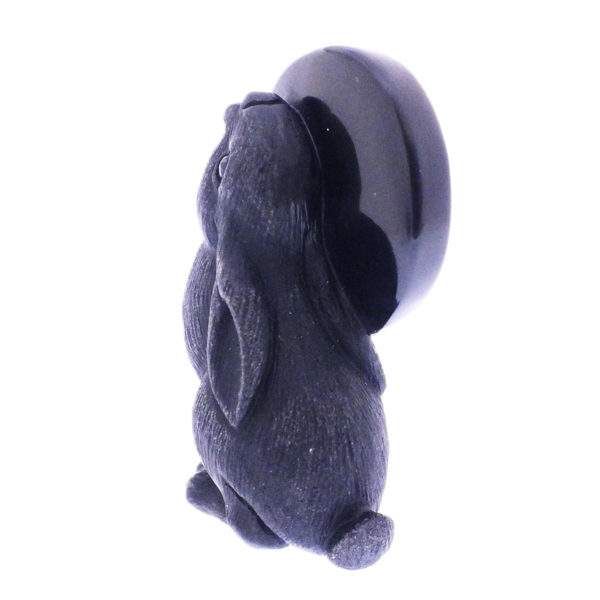 Carving Of A Moon Gazing Hare In Black Obsidian. SP17210POL