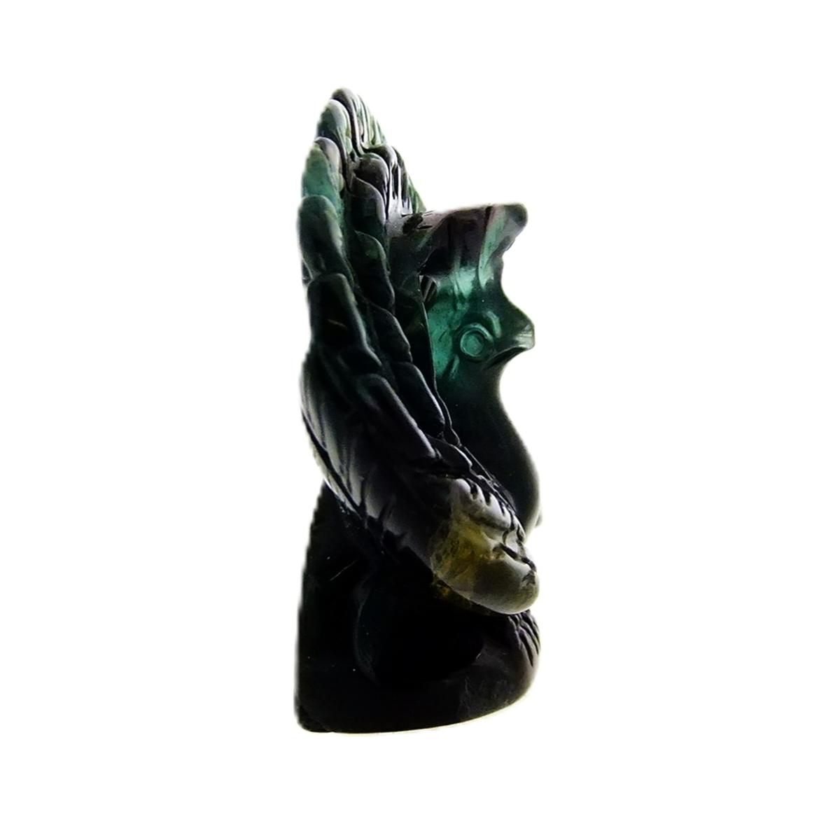 Carving Of A Peacock In Rainbow Fluorite.