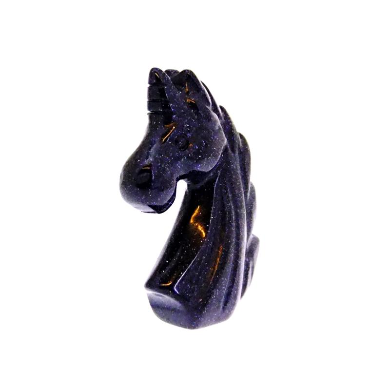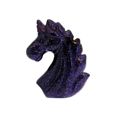 • CARVING OF A UNICORN HEAD IN BLUE GOLD STONE.   SPR14746POL