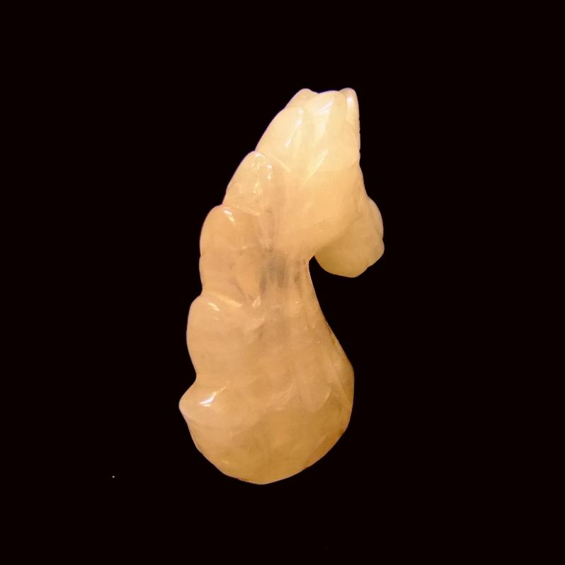 CARVING OF A UNICORN HEAD IN ROSE QUARTZ. SPR14743POL