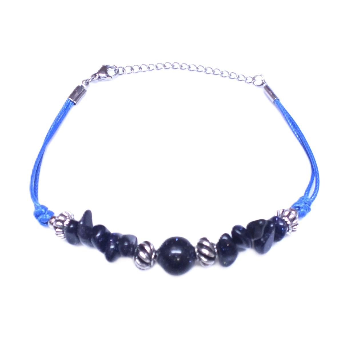Chip & Bead Bracelet Featuring Blue Goldstone & Silver Plated Beads On A Blue Cord With Lobster Style Clasp With Extender Chain.   SPR16981BR