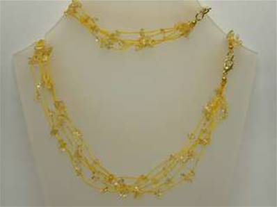 CITRINE THREADED GEM CHIP 18" NECKLACE & 7" BRACELET TWO PIECE SET. EACH PIECE FEATURES A GOLD PLATED LOBSTER STYLE CLASP. SET = 20g.