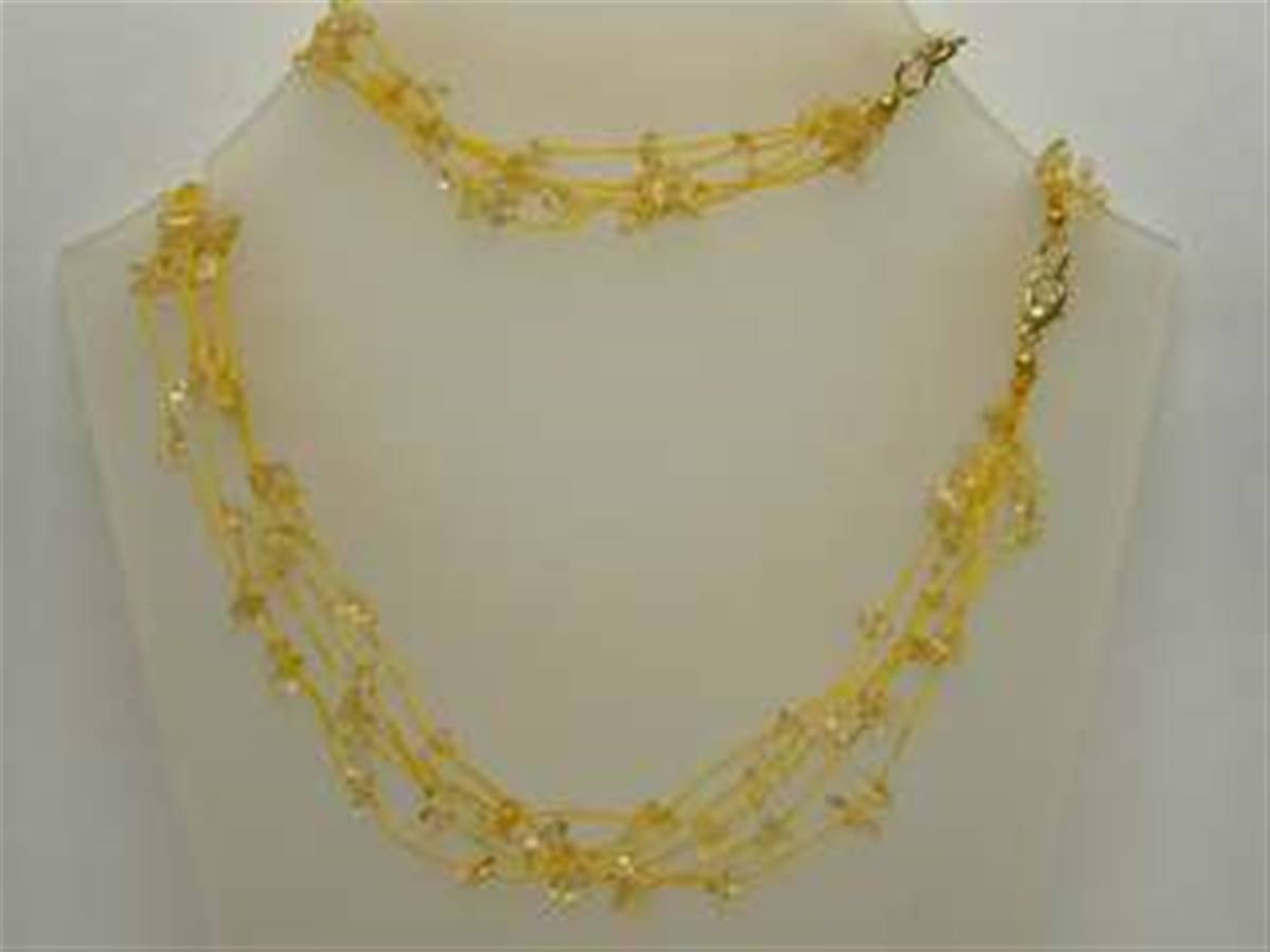CITRINE THREADED GEM CHIP 18" NECKLACE & 7" BRACELET TWO PIECE SET. SPR992