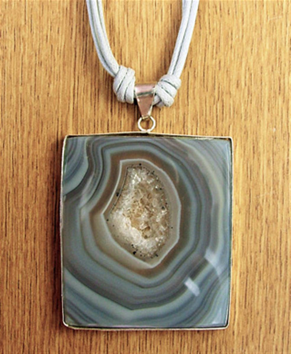 CORD NECKLACE FEATURING A LARGE SQUARE CUT AGATE SLICE. SP8083