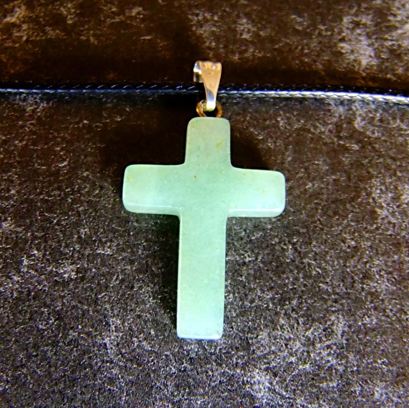 • CROSS PENDANT IN GREEN AVENTURINE ON WAXED CORD.   SPR13960PEND