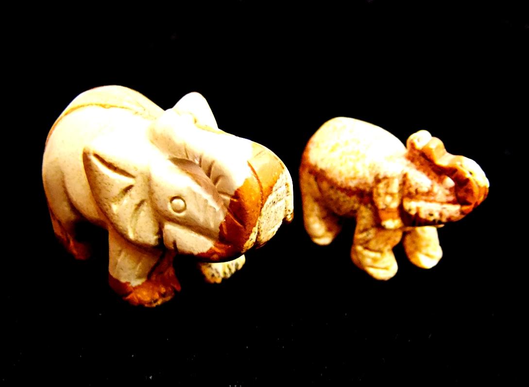 ELEPHANT WITH CALF CARVINGS IN PICTURE JASPER.