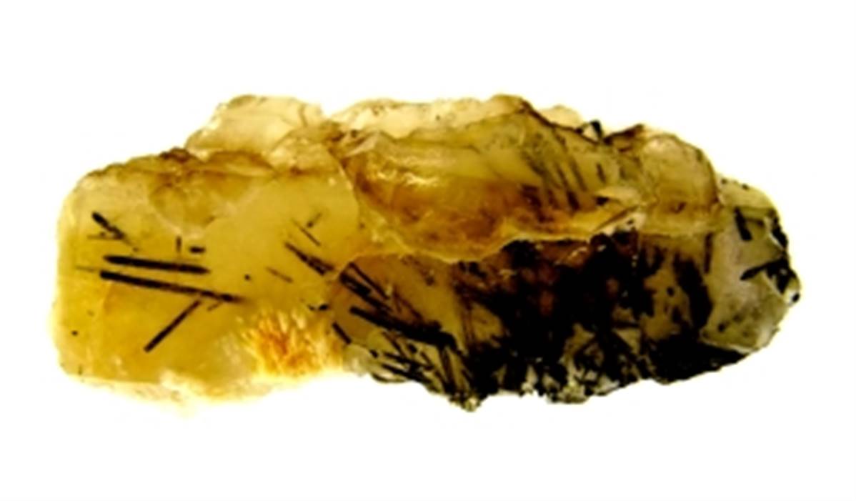 FEATURES GREEN TOURMALINE INCLUSIONS. ORIGINATES FROM BRAZIL.