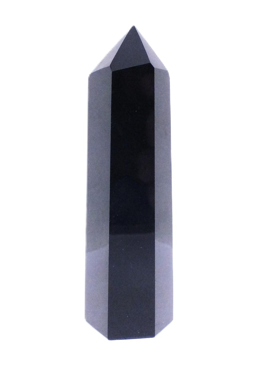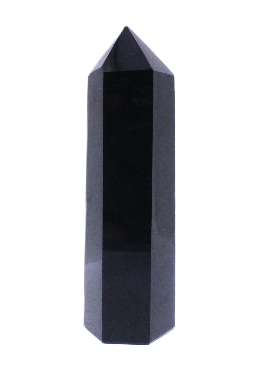Fully Polished And Facetted Tower/ Point In Black Obsidian.