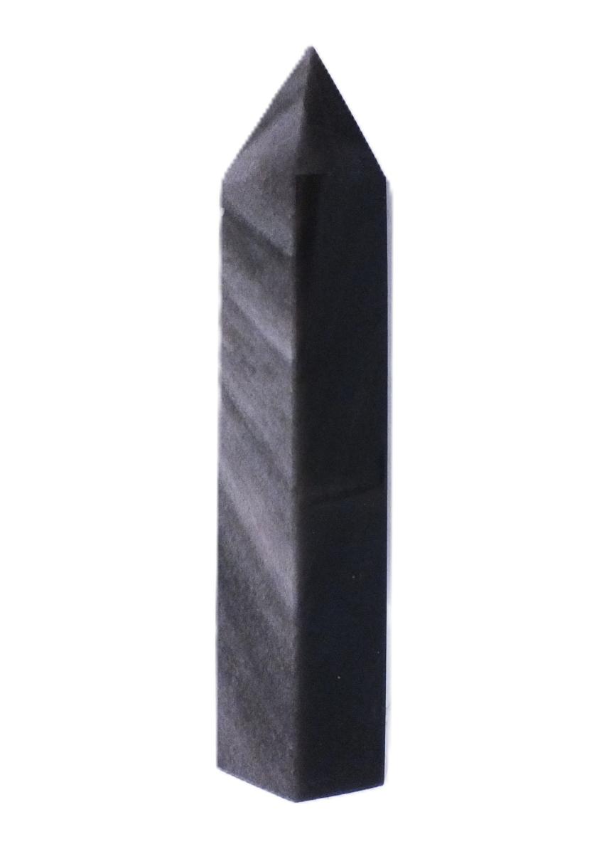 • Fully Polished And Facetted Tower/ Point In Silver Sheen Obsidian.   SP17317POL