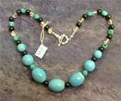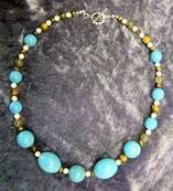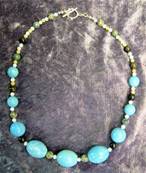 | | THIS NECKLACE FEATURES BEADS IN TURQUOISE, AZURITE, LIME JADE, OPALITE & BLUE TIGERSEYE. WEIGHT - 72g. FEATURES A 'T' BAR STYLE CLASP IN STERLING SILVER. |