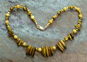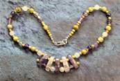 | | THIS NECKLACE FEATURES BEADS IN PICASSO STONE, LABRADORITE, QUARTZ & YELLOW JADE. WEIGHT = 40g. FEATURES A SILVER PLATED 'T' BAR STYLE CLASP. |