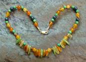 | | THIS NECKLACE FEATURES BEADS IN GREEN AVENTURINE, AZURITE WITH MALACHITE & MOTHER OF PEARL. WEIGHT = 40g. FEATURES A 'T' BAR STYLE CLASP IN STERLING SILVER. |
