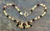| | THIS NECKLACE FEATURES BEADS IN ROSE QUARTZ, BLACK ONYX & RED AGATE. WEIGHT = 45g. FEATURES A SILVER PLATED 'T' BAR STYLE CLASP. |