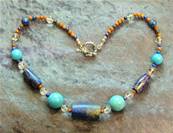 | THIS NECKLACE FEATURES BEADS IN ANTIQUE LAPIS LAZULI, QUARTZ, TURQUOISE & BROWN GOLDSTONE. WEIGHT = 60g. FEATURES A SILVER PLATED 'T' BAR STYLE CLASP. |