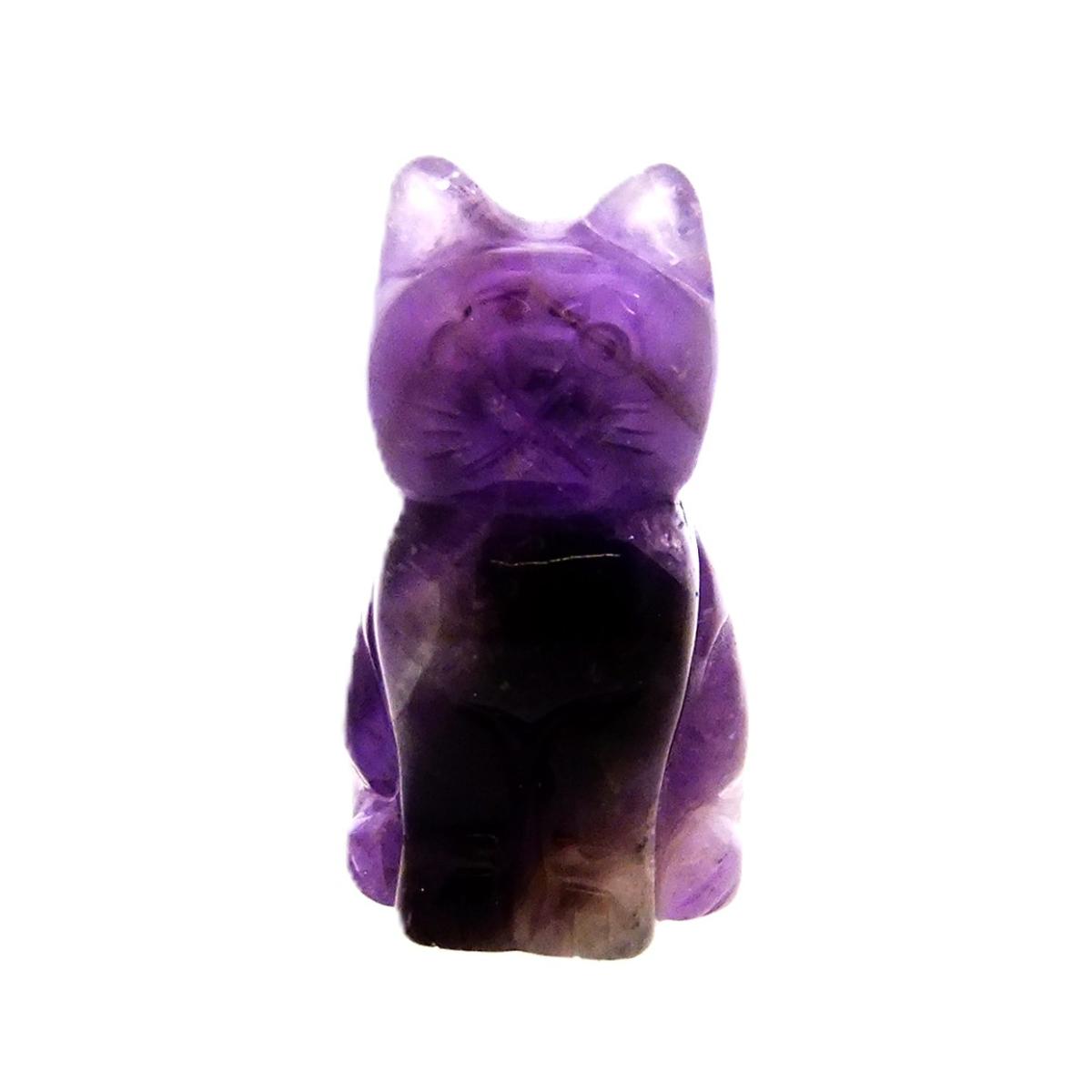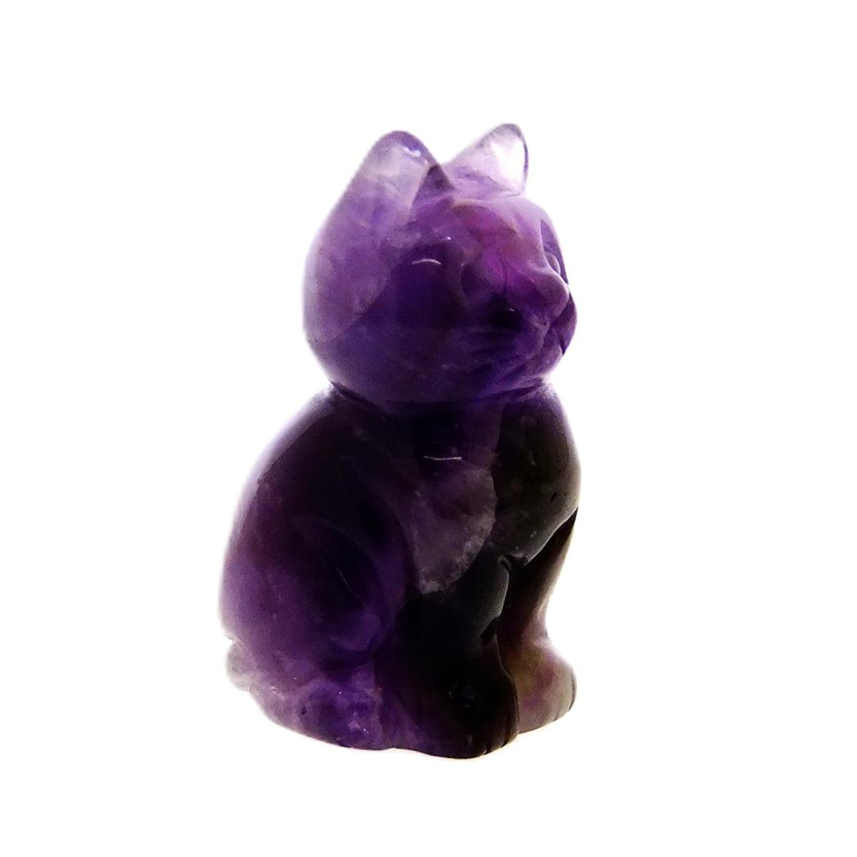 Gemstone Carving Of A Cat (Large Size) In Amethyst.