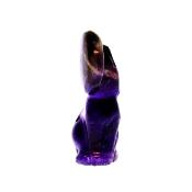 GEMSTONE CARVING OF HOWLING MOON WOLF IN AMETHYST.