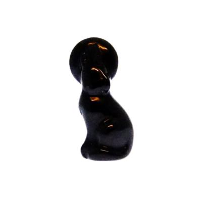 GEMSTONE CARVING OF HOWLING MOON WOLF IN BLACK OBSIDIAN. SPR14757POL