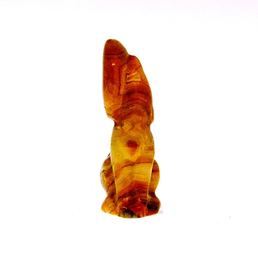 • GEMSTONE CARVING OF HOWLING MOON WOLF IN CRAZY LACE AGATE.   SPR14761POL