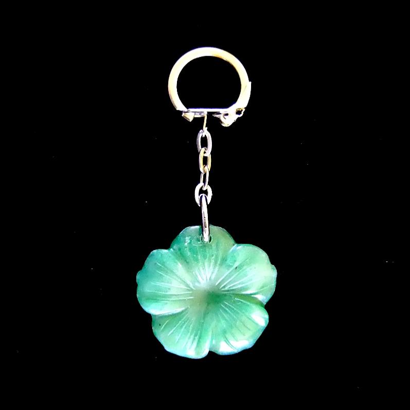 GEMSTONE FLOWER DESIGN KEY RING IN GREEN AVENTURINE.
