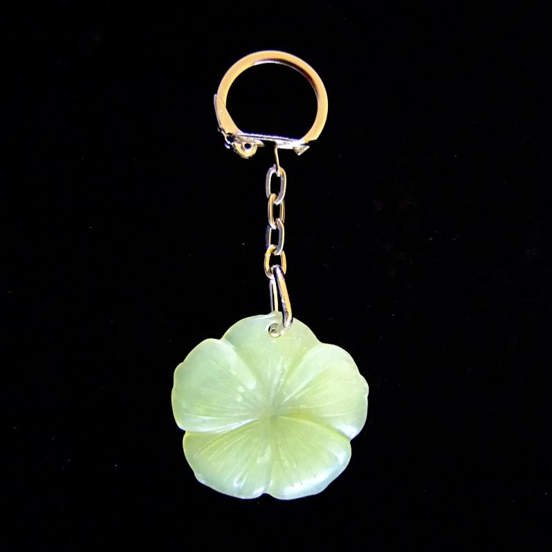 GEMSTONE FLOWER DESIGN KEY RING IN NEW JADE.