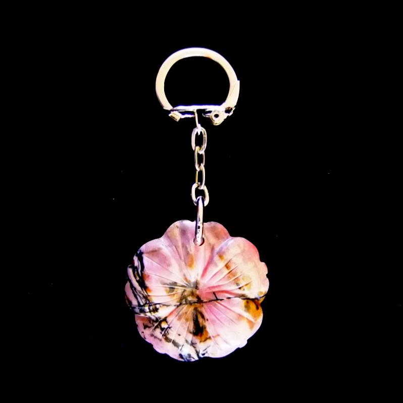 GEMSTONE FLOWER DESIGN KEY RING IN RHODONITE.