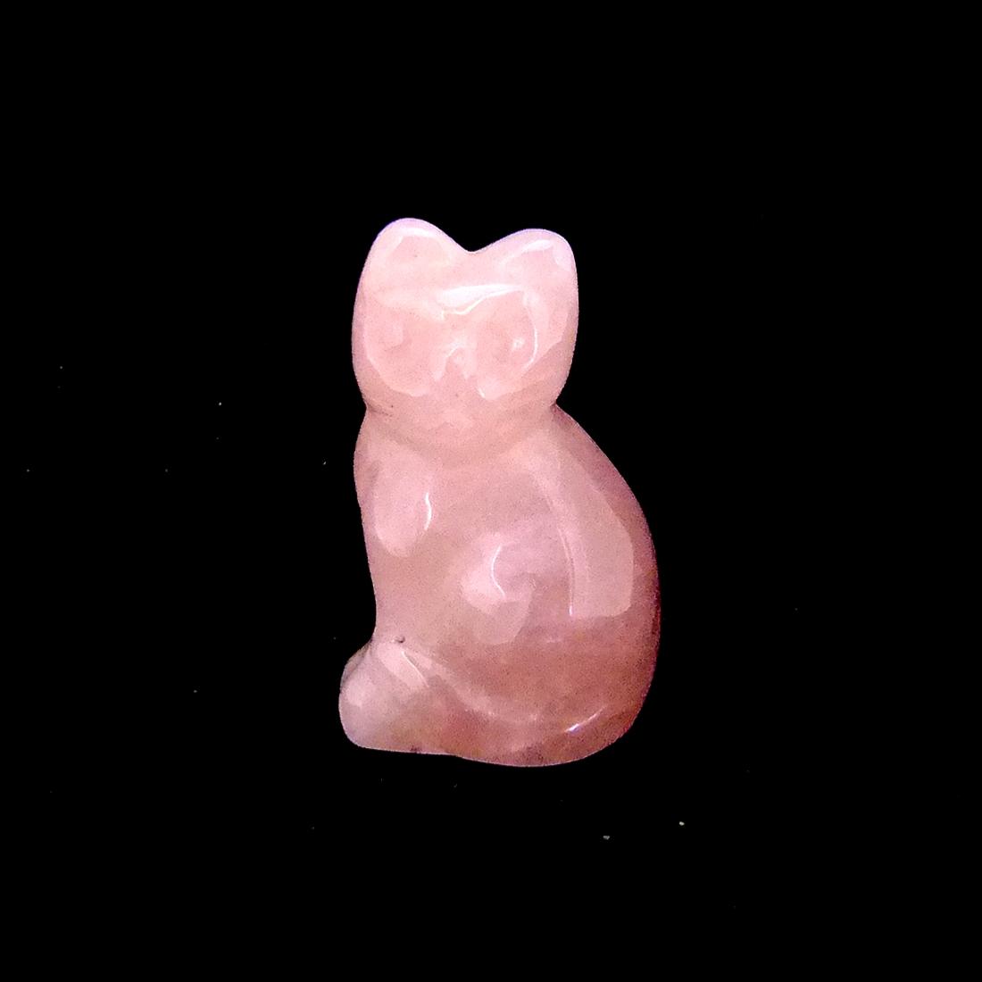 GEMSTONE KITTEN CARVING IN ROSE QUARTZ.   SPR14474POL