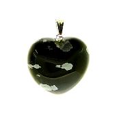 | SNOW FLAKE OBSIDIAN MINI PUFF HEART PENDANT FEATURING SILVER PLATED BAIL.