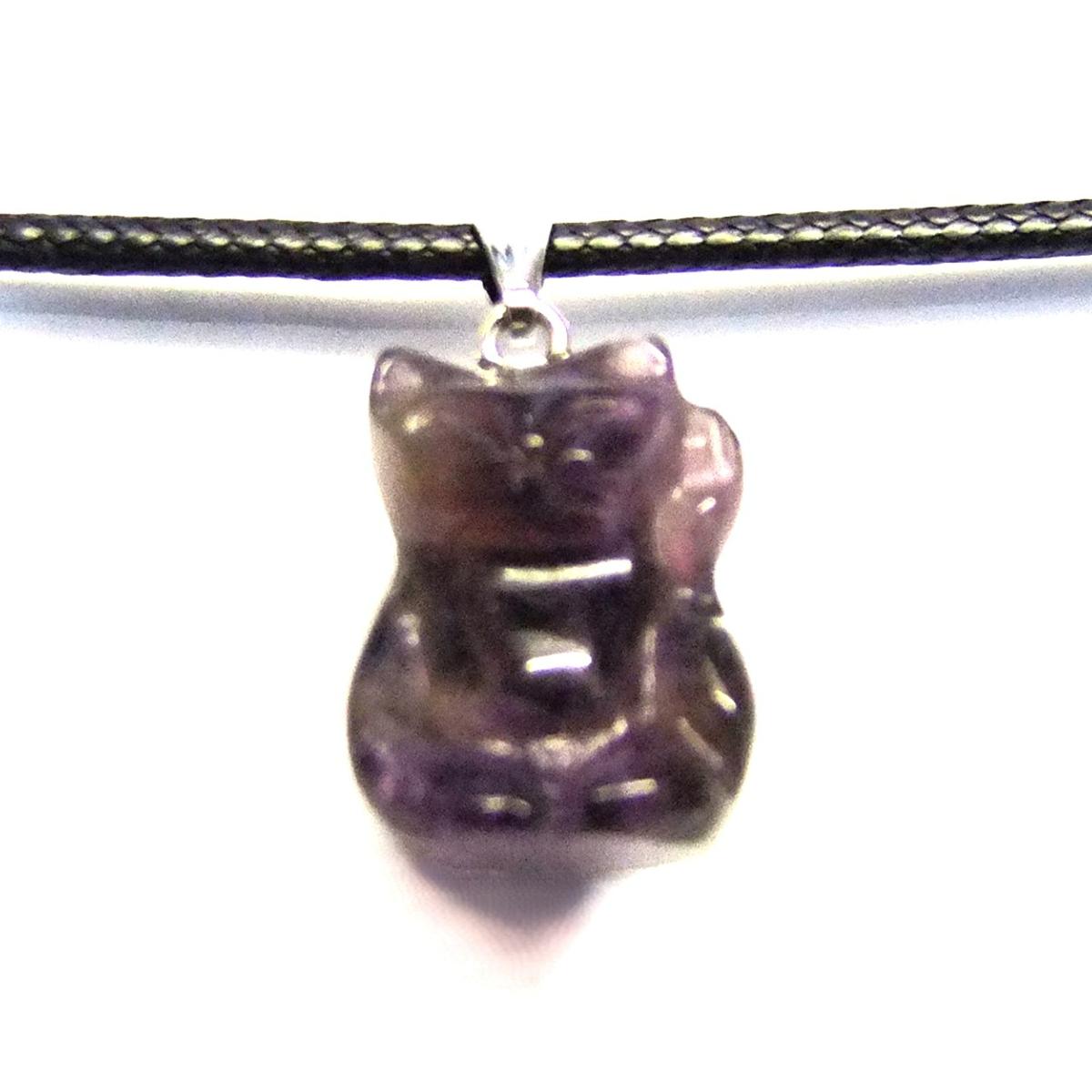 Gemstone & Waxed Cord Necklace Featuring A Carved Waving Cat Pendant In Amethyst. SPR16095PEND