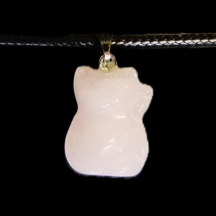 • Gemstone & Waxed Cord Necklace Featuring A Carved Waving Cat Pendant In Rose Quartz.   SPR16101PEND
